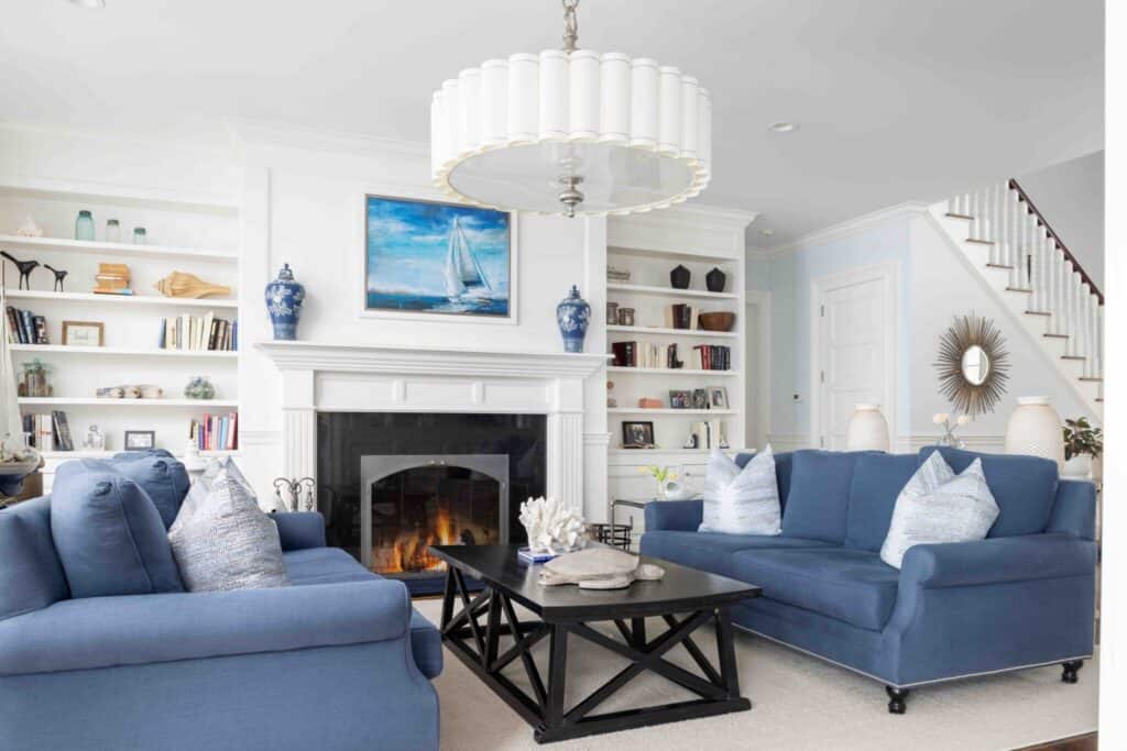 Spanning approximately 5,500 square feet, the home was designed to frame the water from nearly every room. Soaring ceilings, walls of glass, and an open-concept layout create seamless flow between kitchen, living, and dining spaces, ideal for both large-scale entertaining and quiet coastal living. Two fireplaces, a private office, and multiple waterside balconies add warmth and versatility.