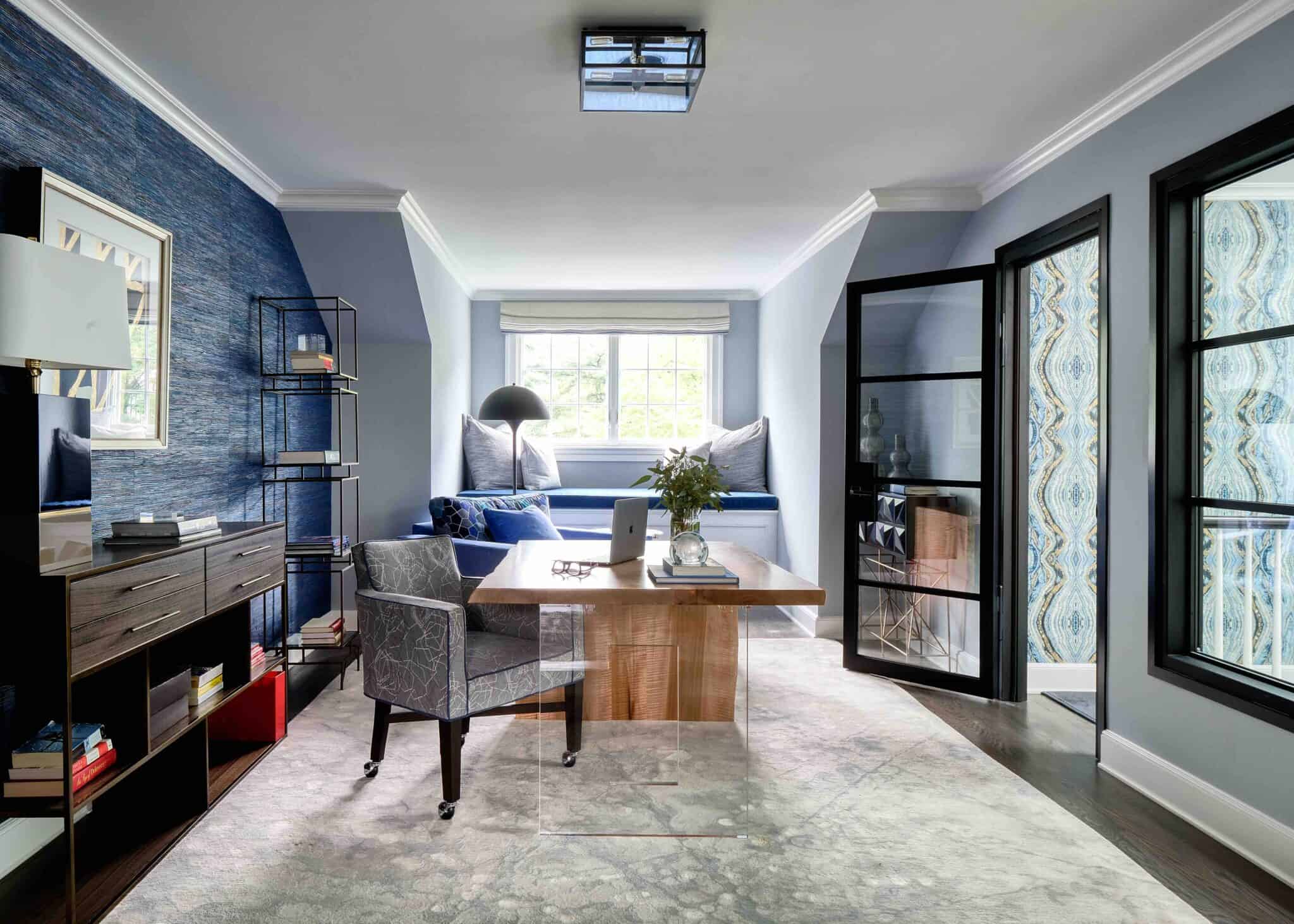 In a home office, balance becomes both practical and aesthetic. Langdon suggests incorporating custom millwork or built-in cabinetry to fit the room’s size while fostering productivity. “Organization and order are key to staying productive,” she says. These subtle choices can have a big impact, helping the space feel structured and supportive.